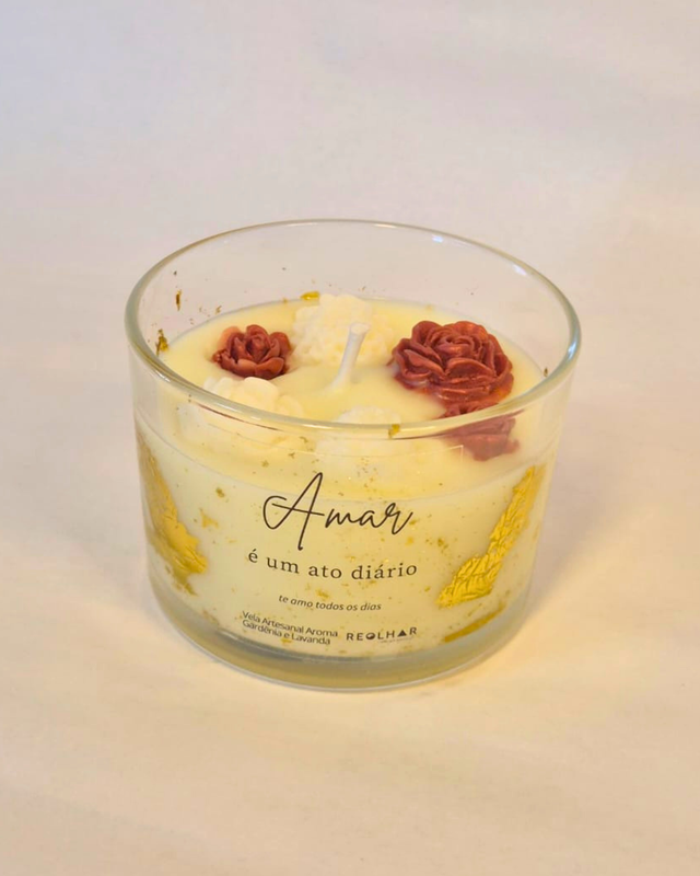 Vela aromática com cera vegetal e aroma de Gardênia e Lavanda